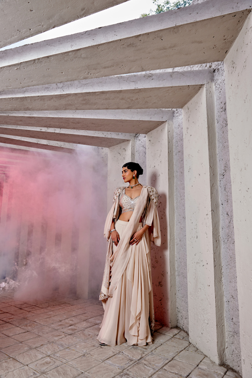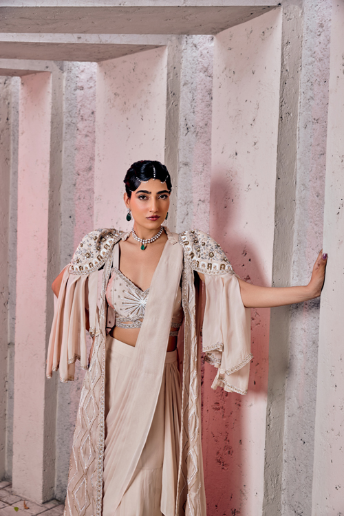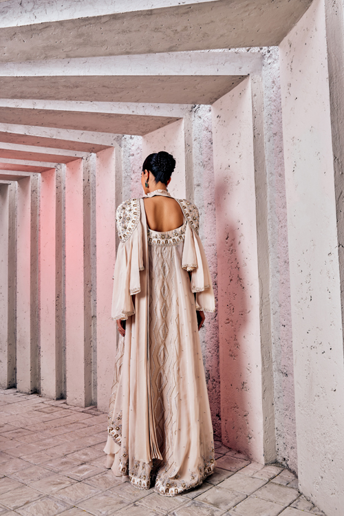 Description : The meteoric light embroidery emulate the stars in the galaxy , which best supports the collection SHAMSIA.