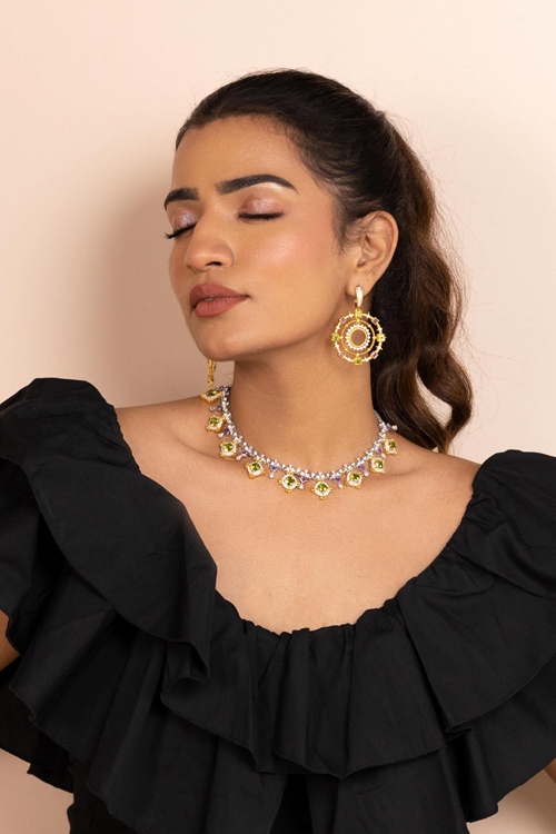 Materials Used : 925 Sterling Silver (Cadmium & nickle free), 18kt Gold Plating, Citrine, Green Onyx, Moissanite