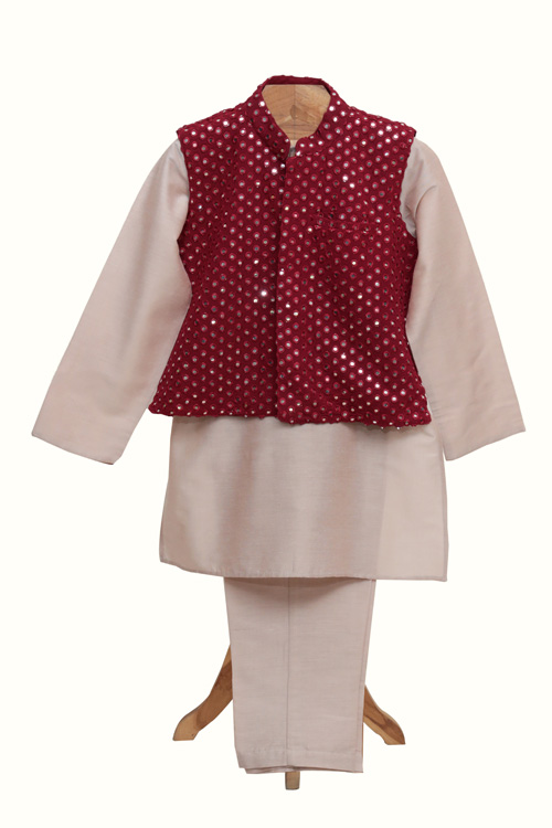 Description : Cotton Silk Kurta Pyjama and Mirror work Jacket