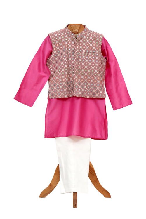 Description : Chanderi Silk Kurta with Pyjama and Mirror work Jacket