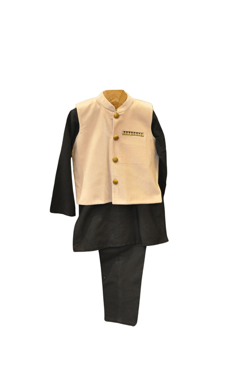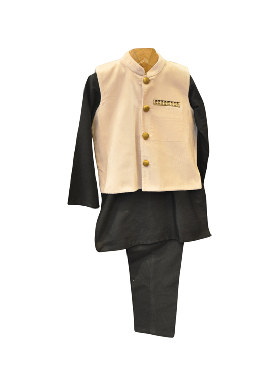 Description : Cotton Silk Kurta Pyjama with Salmon Pink Velvet Jacket