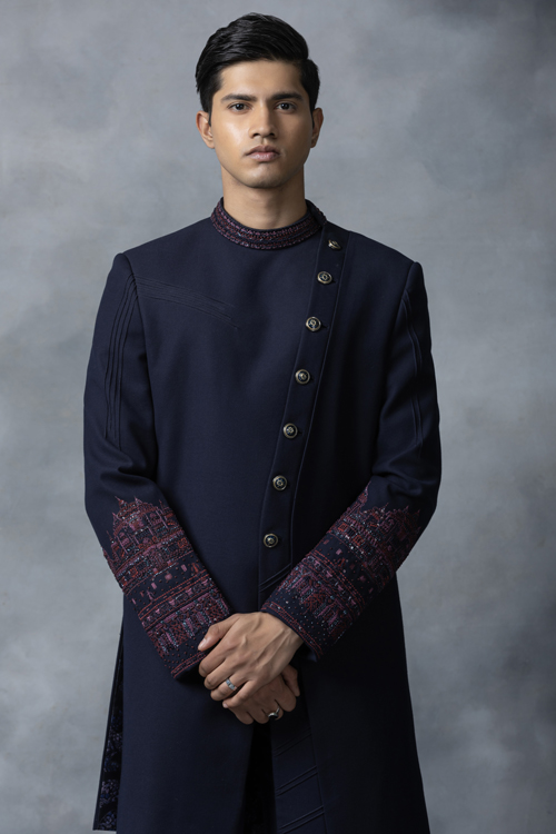 INDO-WESTERN HIGHLIGHTED WITH WINE AND NAVY THREAD WORK PAIRED WITH PANTS