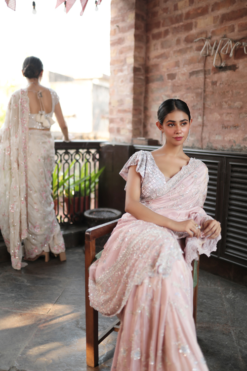 PINK EMBROIDERD SAREE