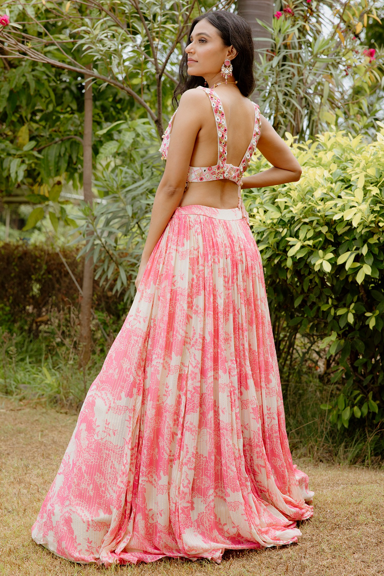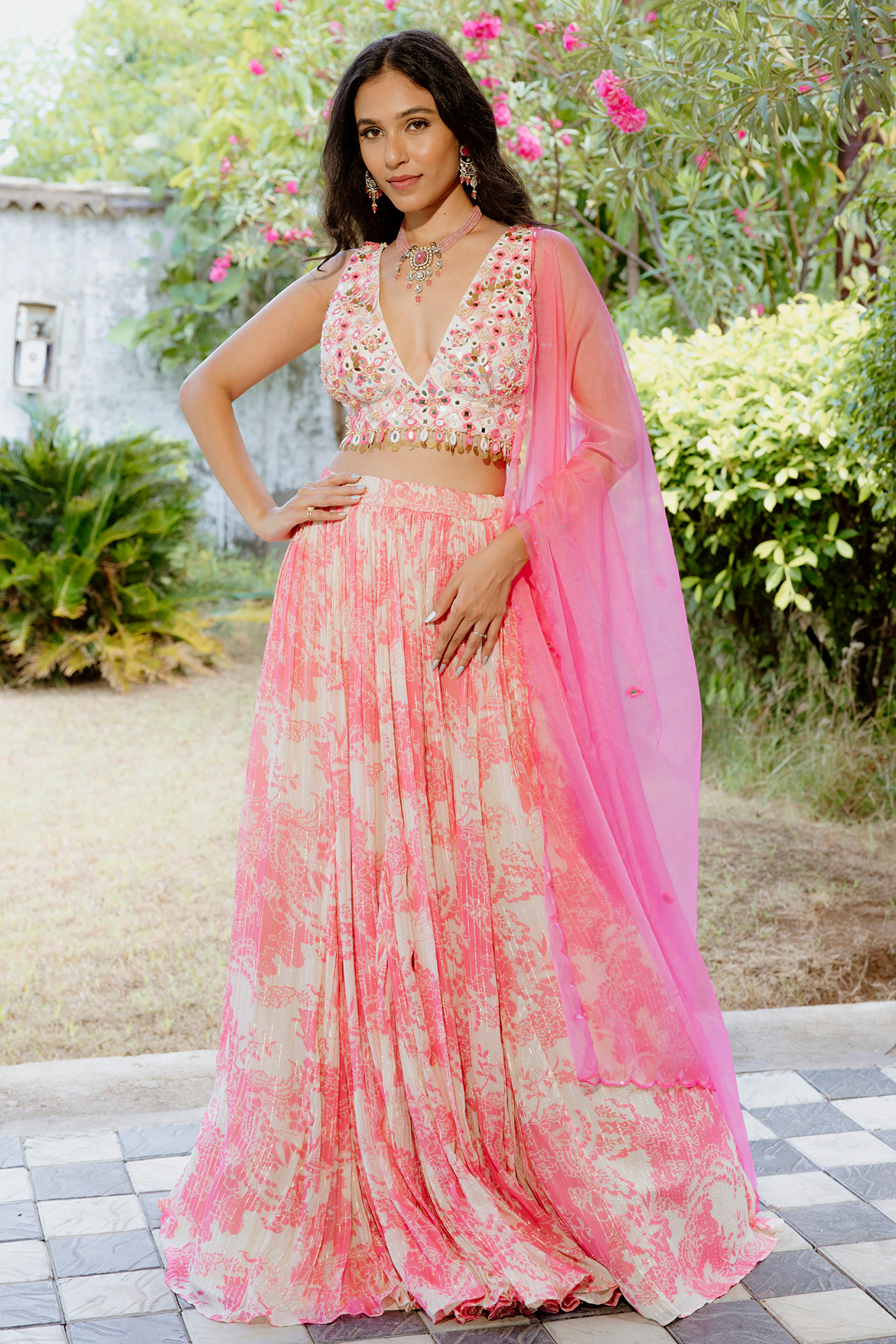 Pink Viscose Georgette Digital Printed Kalidar Lehenga Set
